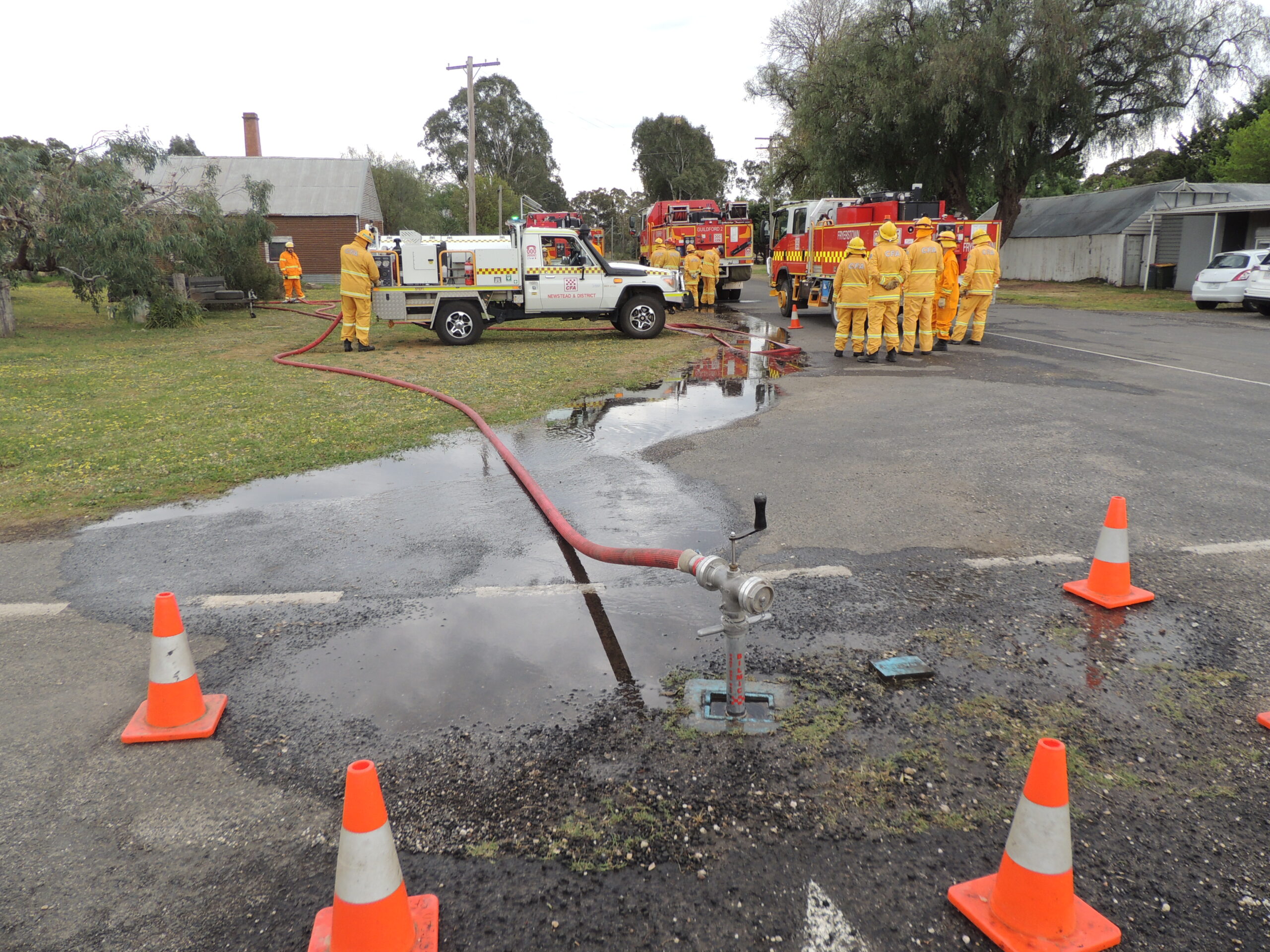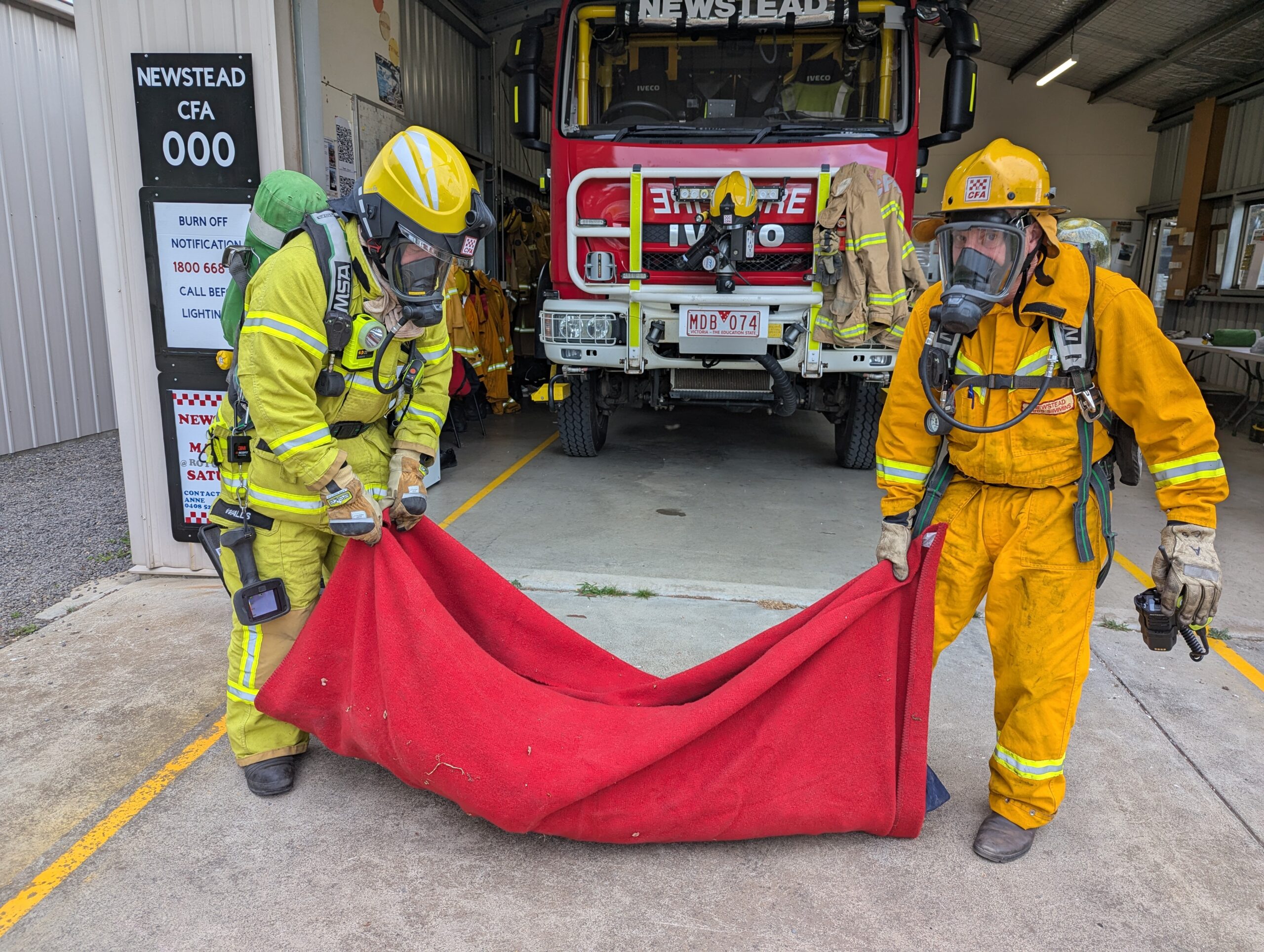 On Sunday 3rd August, Members from the Newstead fire brigade travelled to VEMTC Huntly a purpose built training facility, where they practiced their skills. Crews conducted multiple house fire scenarios, involving members wearing breathing apparatus and entering a structure filled with smoke and flames (provided by strategically positioned gas burners). This replicates the heat and smoky environment encountered when entering a burning building.