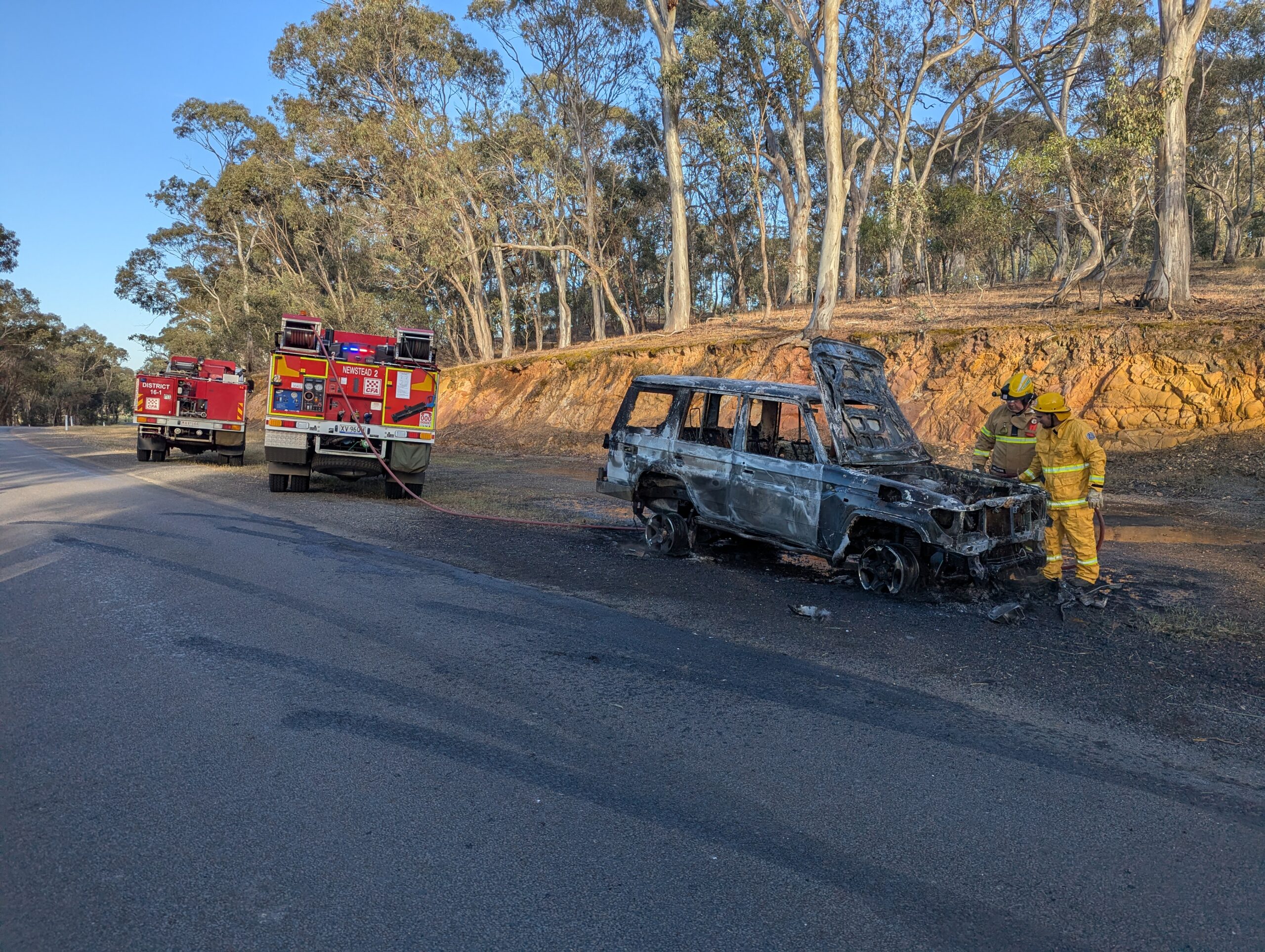 .The Newstead fire brigade turned out yesterday (Sunday 6th) to support Campbelltown at a stubble burn off out of control. Newstead Tankers 1 and 2 along with our Forward Command Vehicle (FCV) and Big Fill all attended, another strong turnout with 13 members responding. The brigade conducted mopping up operations along the creek area that had stopped the run of the fire, another excellent job conducted by our members. Once again, we must comment on the dry conditions at the present time with a bit of warm weather later in the week, the chance of a fire increases in our local area.