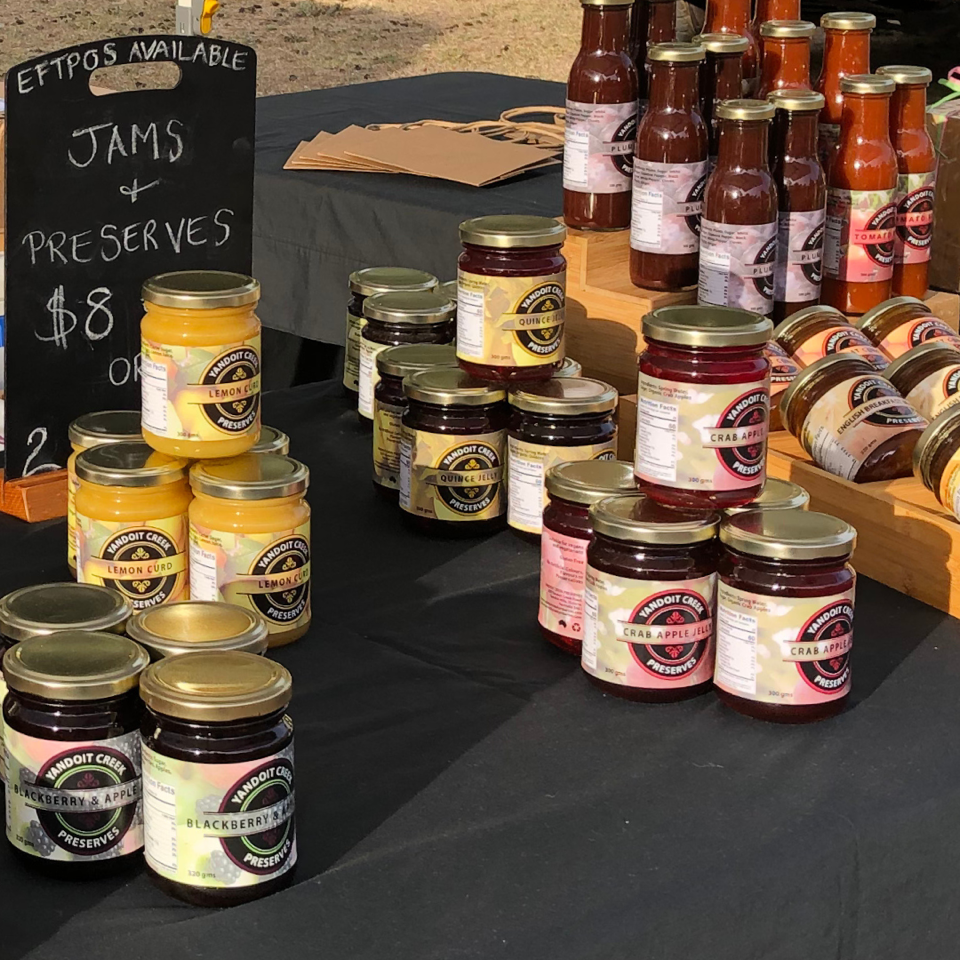 • Yandoit Creek Preserves, selling their delicious range of homemade preserves including jams, relishes, chutneys and their much-loved lemon curd and piccalli.